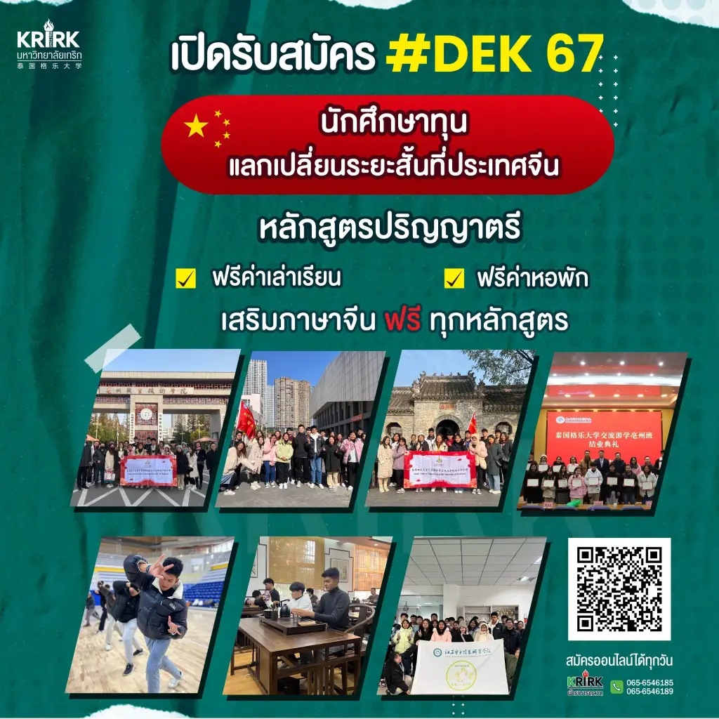 เปิดประตูสู่อนาคต กับ #ทุนแลกเปลี่ยนระยะสั้นประเทศจีน ที่มหาวิทยาลัยเกริก มอบทุนการศึกษาและแลกเปลี่ยนระยะสั้นประเทศจีนให้น้องๆ #Dek67 ภาคปกติทุกคน #เข้าร่วมโครงการนักศึกษาทุนแลกเปลี่ยนระยะสั้นประเทศจีน พบเพื่อนใหม่จากมหาวิทยาลัยชั้นนำในประเทศจีน