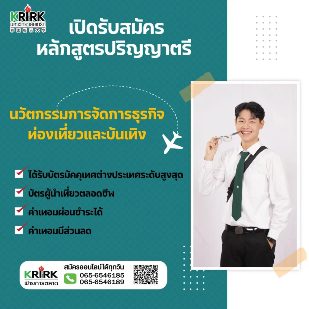เปิดรับสมัครแล้ว ปริญญาตรีหลักสูตรนวัตกรรมการจัดการธุรกิจท่องเที่ยวและบันเทิง เติมเต็มความฝัน สู่เส้นทางนักธุรกิจท่องเที่ยวและบันเทิงมืออาชีพ พิเศษ รับบัตรมัคคุเทศก์ (ต่างประเทศ) ระดับสูงสุด และบัตรผู้นำเที่ยวตลอดชีพเมื่อสำเร็จการศึกษา