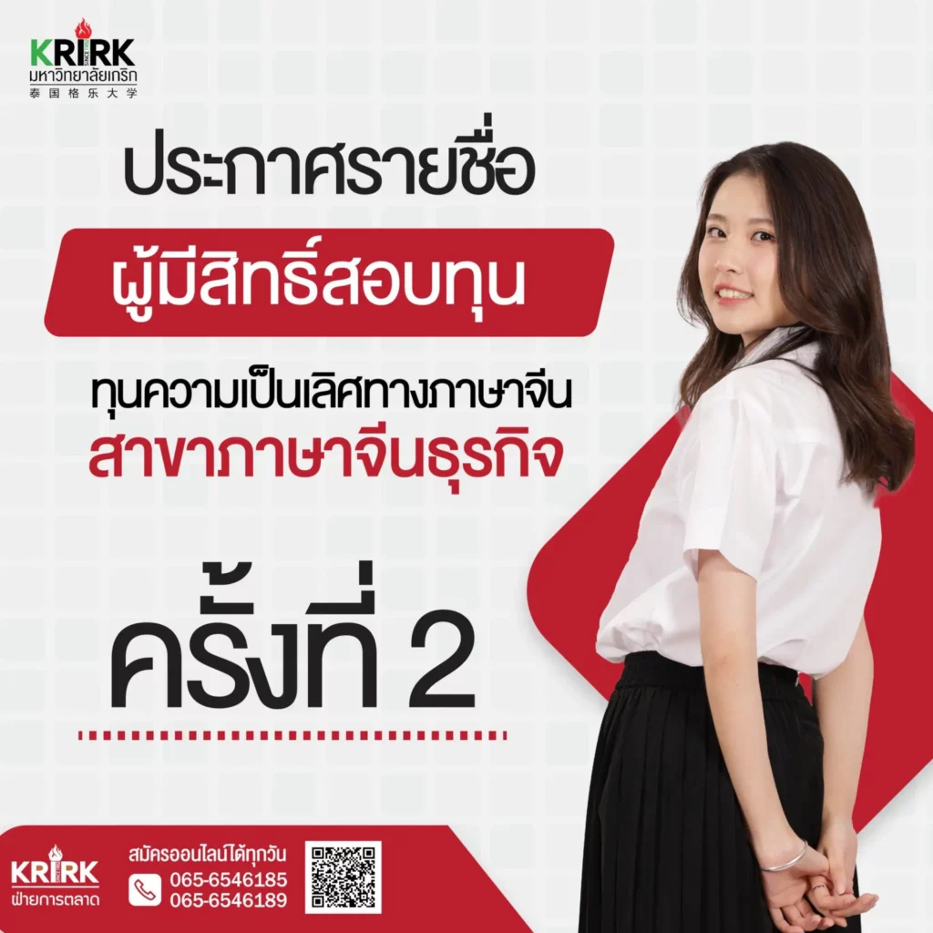 ประกาศรายชื่อผู้มีสิทธิ์สอบข้อเขียนทุนความเป็นเลิศทางภาษาจีน สาขาภาษาจีนธุรกิจรอบที่ 2 ปีการศึกษา 2567
