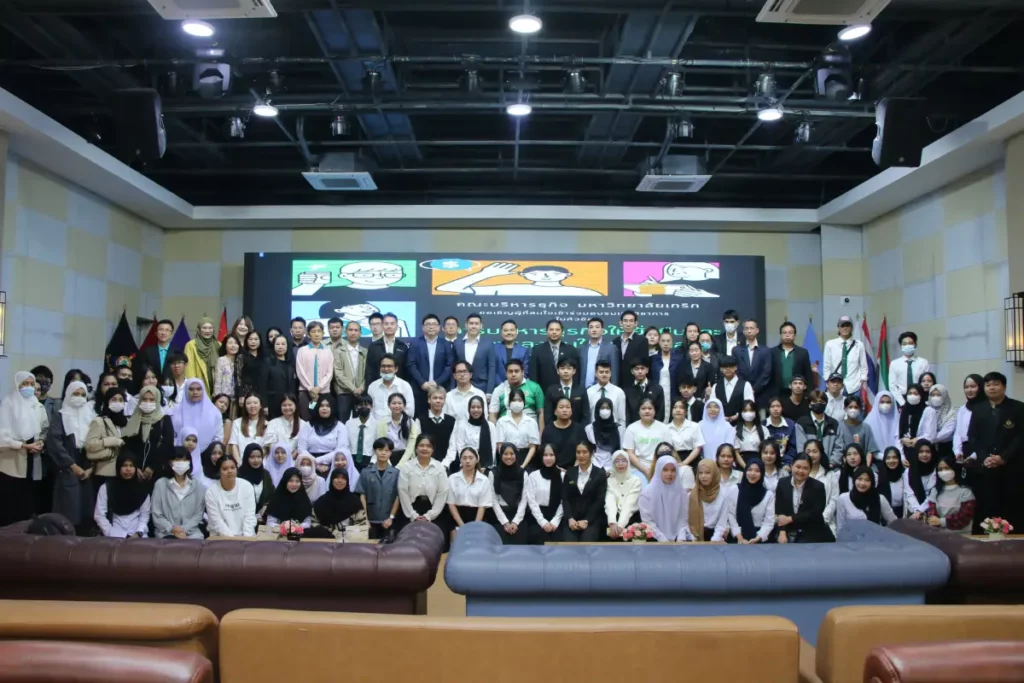 ศ.ดร.นพ.กระแส ชนะวงษ์ อธิการบดี พร้อมด้วย อาจารย์ หวัง ฉางหมิง ประธานกรรมการบริหาร และคณะผู้บริหาร ร่วมให้โอวาทกับนักกีฬาเข้าร่วม “การแข่งขันกีฬามหาวิทยาลัยแห่งประเทศไทย ครั้งที่ 49 นนทรีเกมส์”
