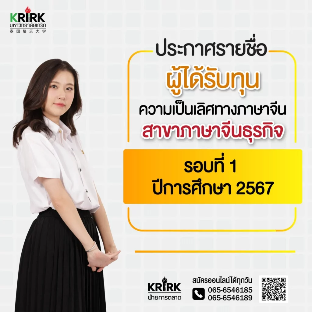 ประกาศรายชื่อผู้ได้รับทุนความเป็นเลิศทางภาษาจีน สาขาภาษาจีนธุรกิจรอบที่ 1 ปีการศึกษา 2567