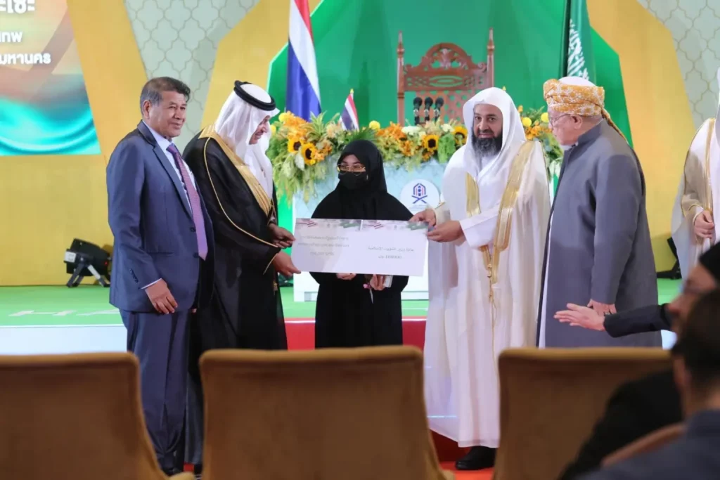 มุสลีมะห์หนึ่งเดียวคนนี้ ได้เข้ารอบชิงชนะเลิศ บนเวทีระดับชาติ ในโครงการ “จัดการทดสอบการท่องจำพระมหาคัมภีร์อัลกุรอาน ระดับชาติ ครั้งที่ 1”