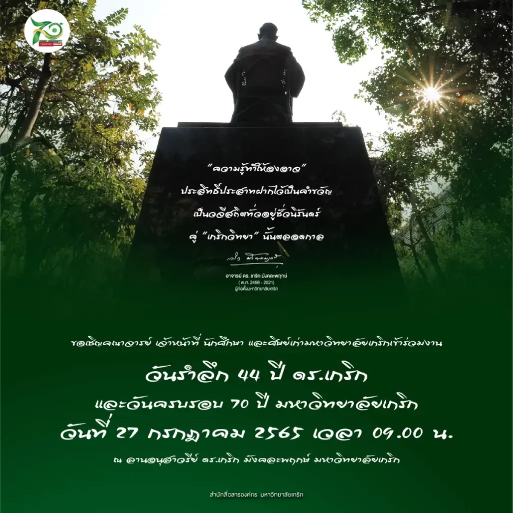 ขอเชิญคณาจารย์ เจ้าหน้าที่ นักศึกษา และศิษย์เก่ามหาวิทยาลัยเกริกเข้าร่วมงาน วันรำลึก 44 ปี ดร.เกริก และวันครบรอบ 70 ปี มหาวิทยาลัยเกริก