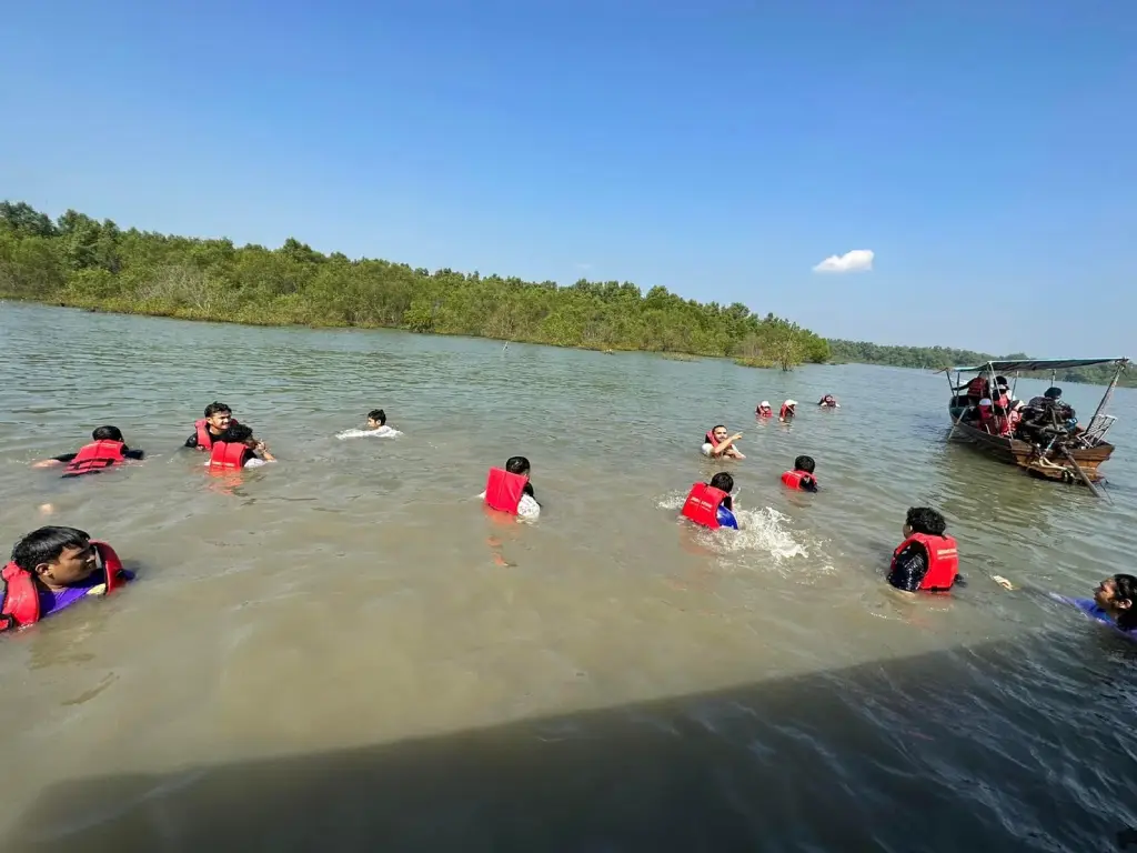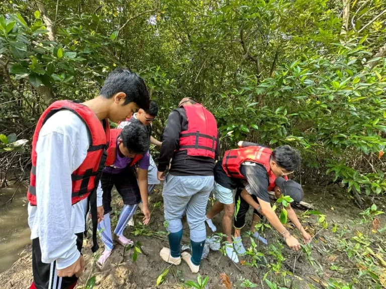ในช่วงเช้า โดย ศาสตราจารย์ ดร.จรัญ มะลูลีม คณบดีวิทยาลัยนานาชาติอิสลามกรุงเทพ มอบหมายให้ อาจารย์สราวุธ เเละซัน รองคณบดีวิทยาลัยนานาชาติอิสลามกรุงเทพ พร้อมด้วย นางสาวกุณภาณัฏฐ์ สุวรรณนุรักษ์ นางสาวศรสวรรค์ มะหะหมัด นางสาวภีรดา หวังโซ๊ะ เเละนายนันทวัฒน์ มะลา นํานักศึกษาไปปลูกป่าชายเลน ณ ตําบลคลองโคน จ.สมุทรสาคร เป็นสถานที่ท่องเที่ยวเชิงอนุรักษ์ที่มีชื่อเสียงของประเทศไทย โดยมีเป้าหมายเพื่อให้นักศึกษาทำจิตอาสาปลูกป่า สร้างความสมดุล “ระบบนิเวศป่าชายเลน เป็นระบบนิเวศที่อยู่ในแนวเชื่อมต่อ (ecotone) ระหว่างผืนแผ่นดินกับพื้นน้ำทะเลในเขตร้อน (tropical region) และกึ่งร้อน (subtropical region) เป็นแหล่งกำเนิดห่วงโซ่อาหาร (food chain) ของมวลมนุษย์ชาติอย่างยั่งยืน”
