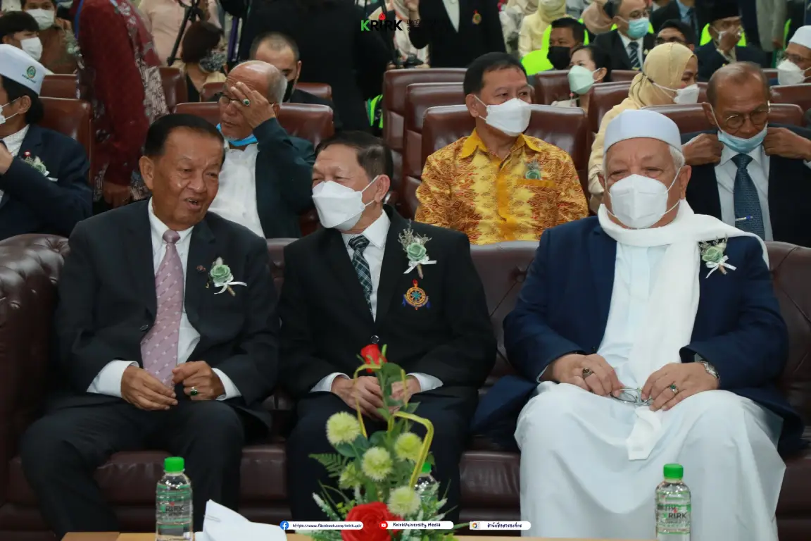 ทั้งนี้ได้รับเกียรติจาก ศ.ดร.นพ.กระแส ชนะวงศ์ อธิการบดีมหาวิทยาลัยเกริก ได้กล่าวต้อนรับแขกผู้ร่วมงานและให้โอวาท โดยท่านได้กล่าวไว้ว่า มหาวิทยาลัยเกริกมีความภาคภูมิใจต่อการพัฒนาการศึกษาที่มีความหลากหลาย มีความโดดเด่นทางด้านภาษาทั้งภาษาอังกฤษ ภาษาจีน และมีวิทยาลัยนานาชาติอิสลามกรุงเทพขับเคลื่อนในภาษาอาหรับ ซึ่งจะมีส่วนสำคัญต่อการเชื่อมโยงสังคมไทยกับสังคมมุสลิมทั่วโลกที่กำลังเติบโตในทุกมิติ ทั้งภาคการท่องเที่ยว การบริการ และการพัฒนาความรู้ความเชี่ยวชาญด้านอุตสาหกรรมฮาลาล การเงินอิสลาม และการจัดการฮัจย์และอุมเราะห์