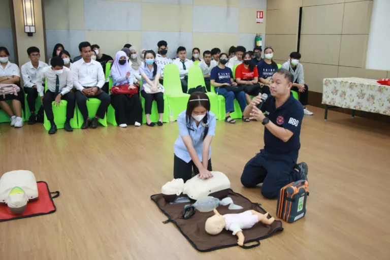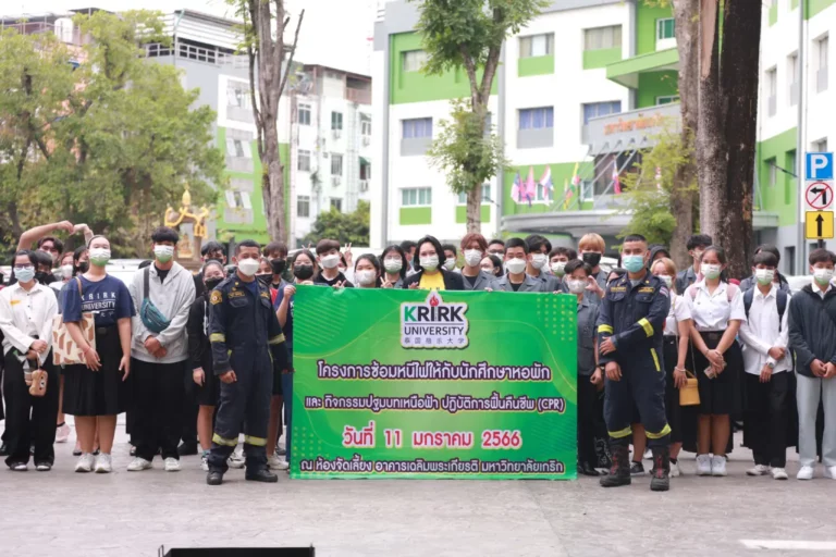 มหาวิทยาลัยเกริกจัดโครงการ “ซ้อมหนีไฟ” และโครงการ “ปฐมบทเหนือฟ้า ปฏิบัติการฟื้นคืนชีพ” (CPR) ให้กับนักศึกษา และบุคลากร
